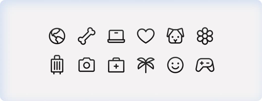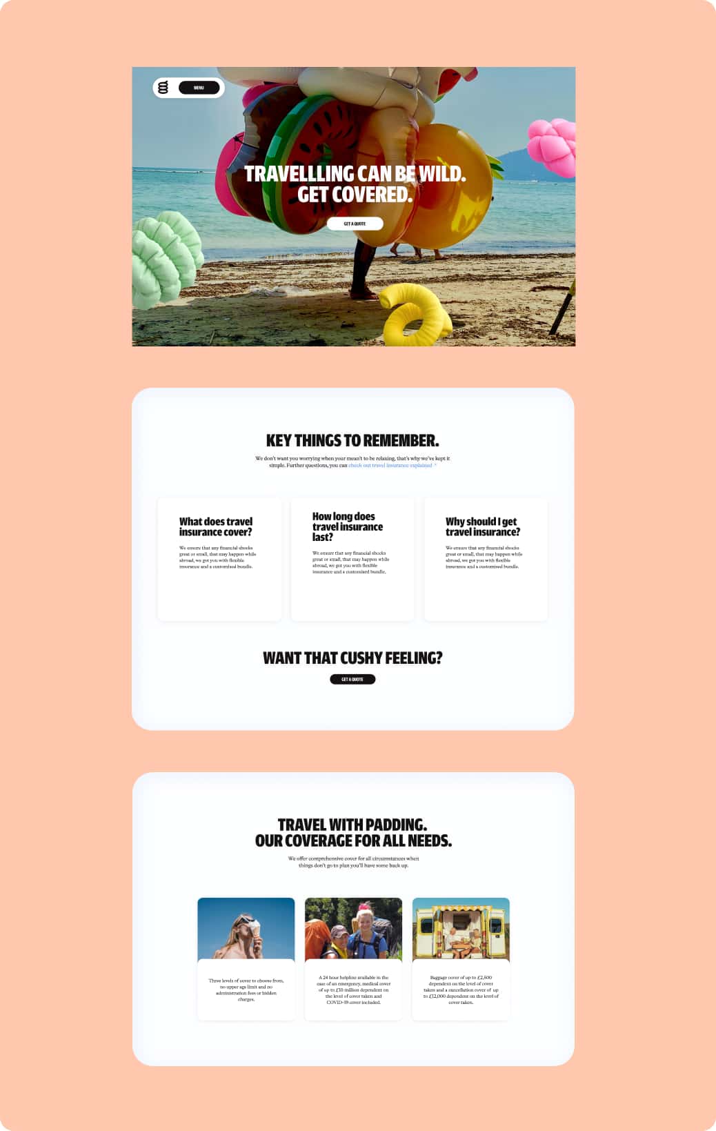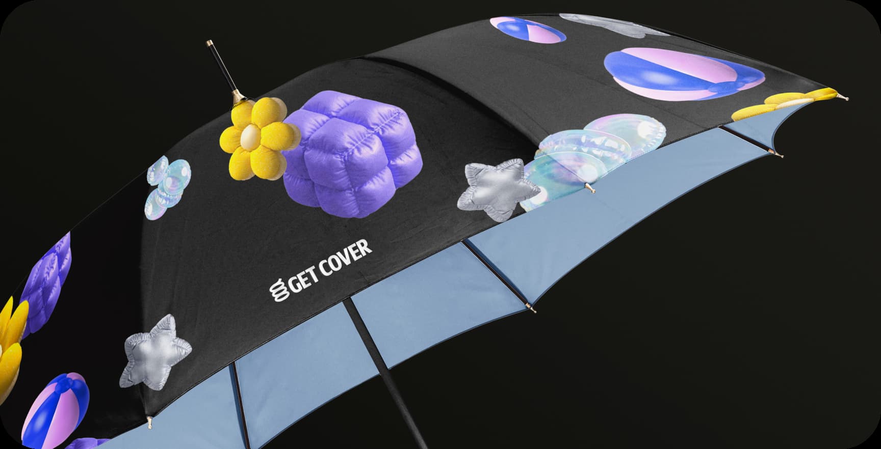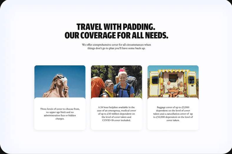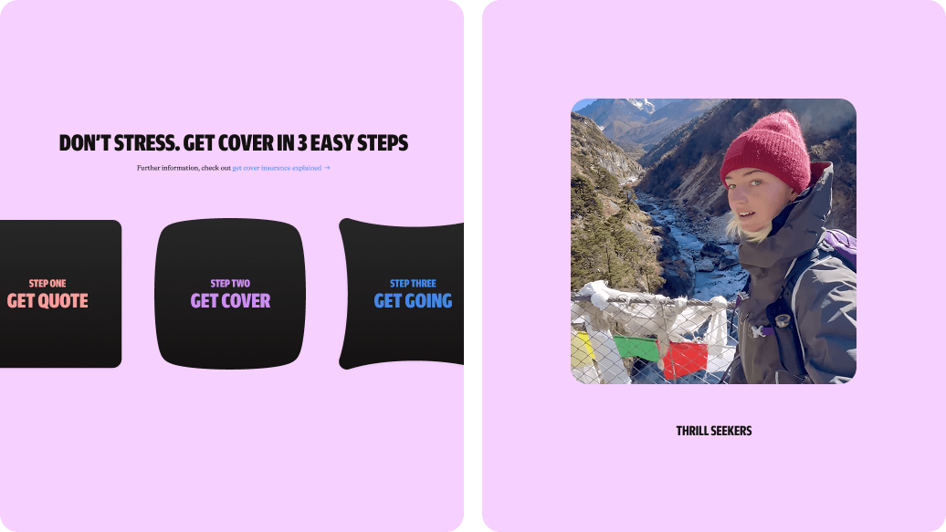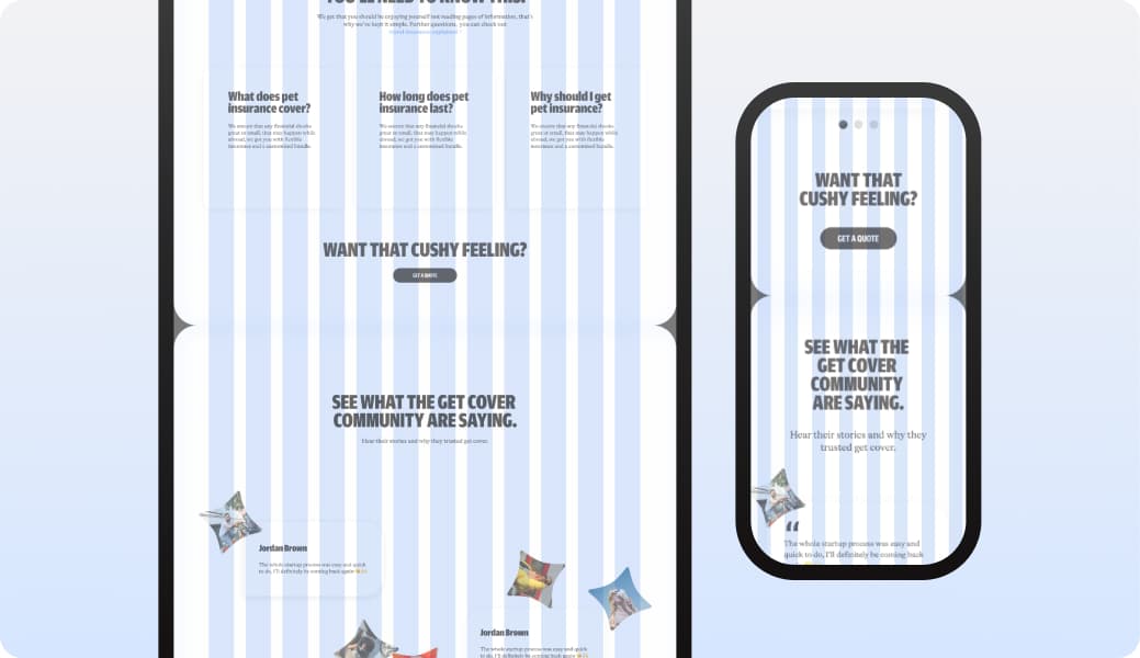 These squishy shapes, used with a sense of playfulness, help visually represent key product categories—for example, a dog bone for pet insurance or a beach ball for travel-related coverage.