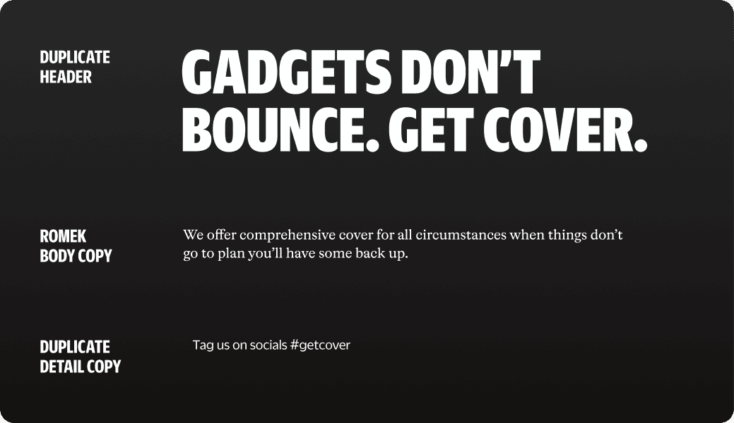 Use Duplicate Sans for bold, high-impact headlines.