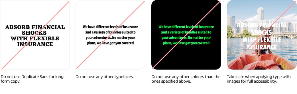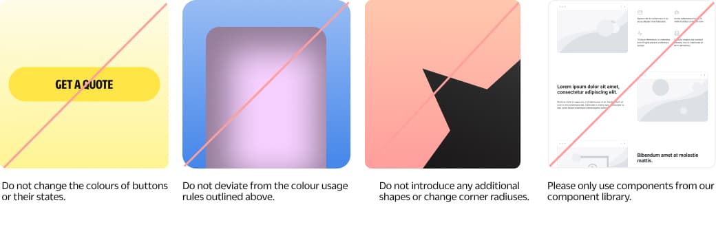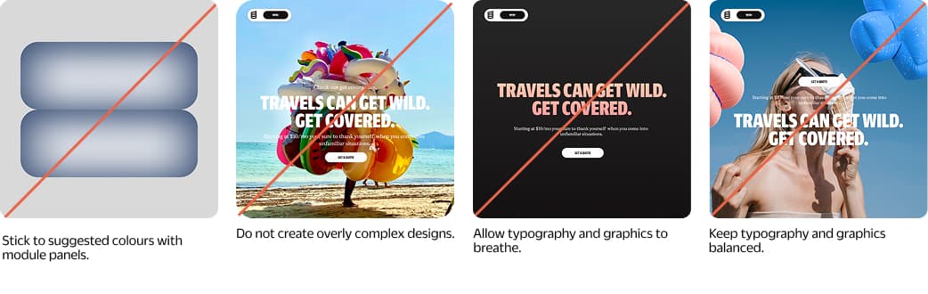 A few key reminders to stay aligned with the intended visual tone. For more examples and inspiration, refer to the brand application section of this document.