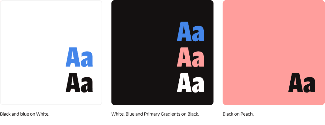 Gradients can be used as a creative type treatment to add depth and dimension. It’s important to follow the visual rules to maintain legibility and colour accessibility across different applications.