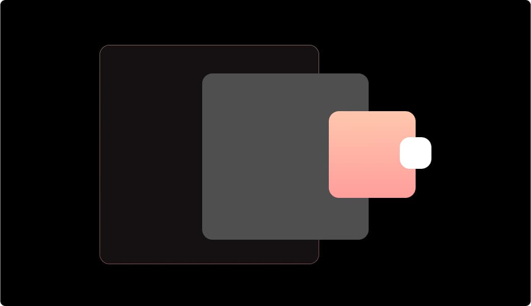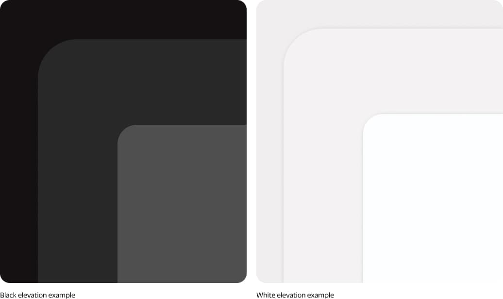 When layering on dark or light backgrounds, use tints to create a sense of depth. The darkest layers should appear furthest back, while lighter panels are brought visually forward.