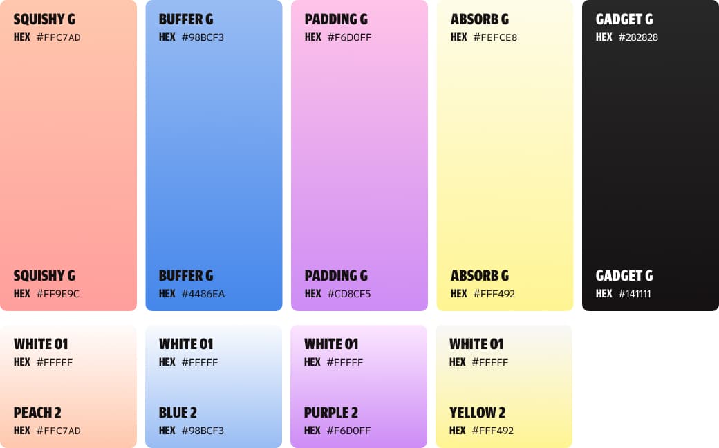 Gradients are used to add visual depth and energy to the brand. They are especially effective in large-scale elements like headlines. To maintain their impact, they should be used in big areas and applied sparingly.