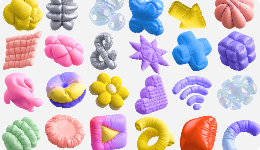 These elements animate by inflating and deflating, creating soft, bouncy interactions that bring energy and motion to the overall experience.
