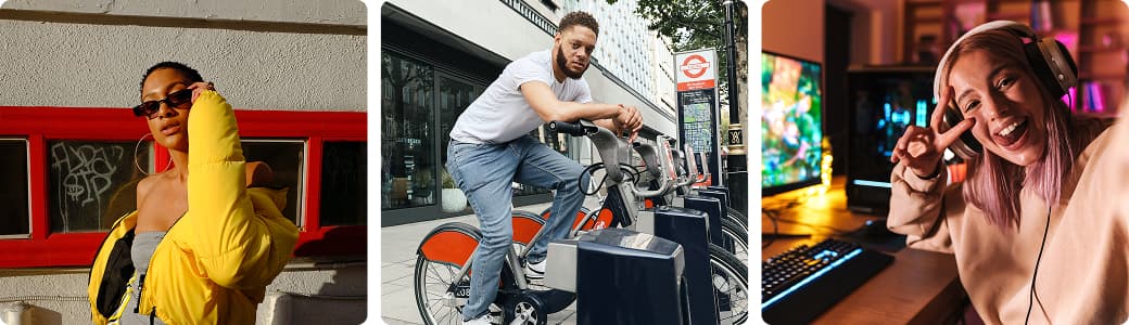 The brand connects with young people by showcasing how they see and explore the world. Imagery includes everyday adventures, spontaneous moments, gadgets they use, and pets they care about.